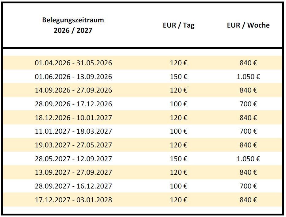 Die Preise gelten bei einer Belegung mit 3 Personen,